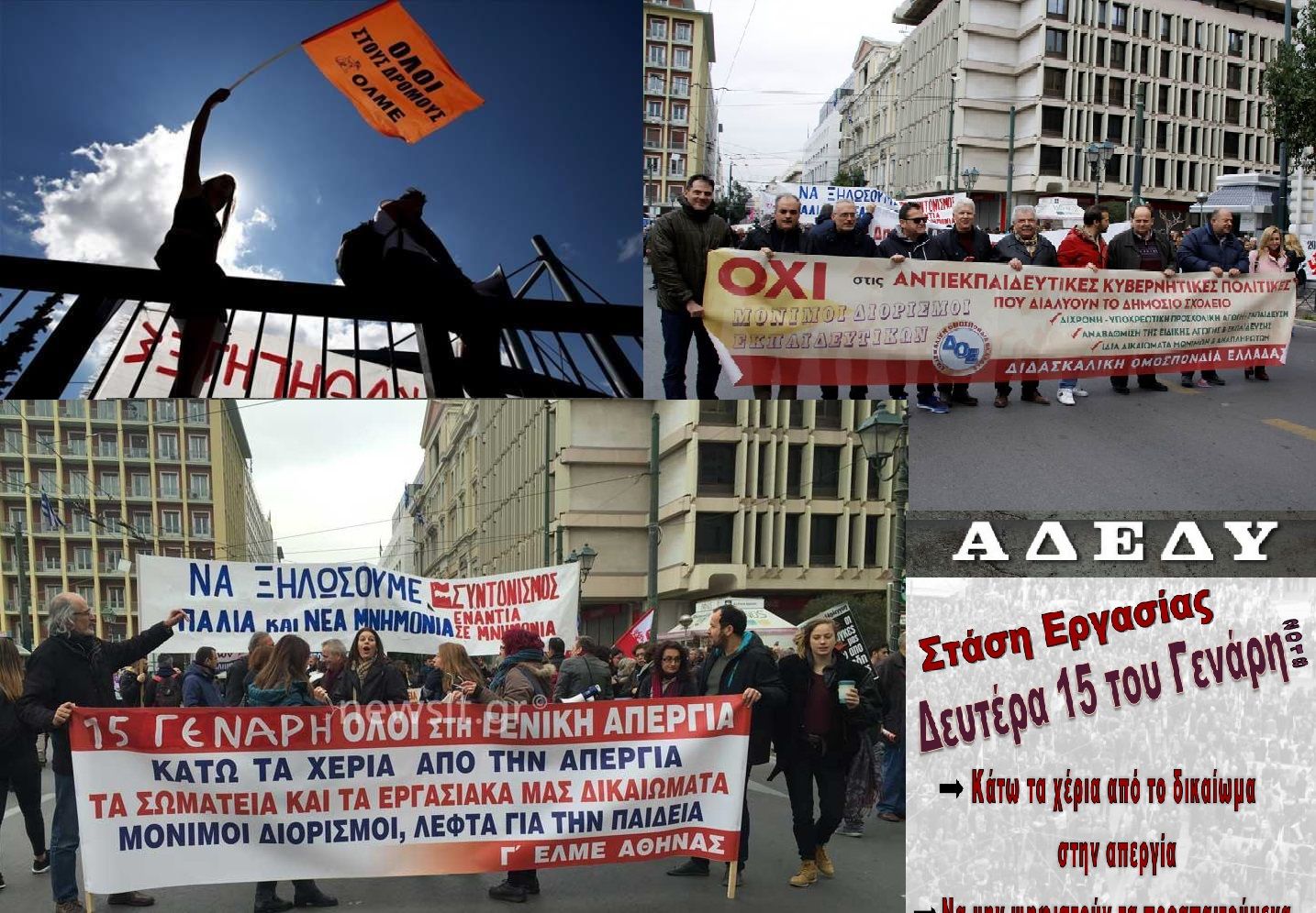 On 15 January 2018, trade unions representing public service workers, including in the education sector, held a major demonstration in Athens. The protest action was in response to the omnibus law 4512 legislated by the Greek government. According to DOE, this law includes prerequisite measures and prior actions which serve as basis for the third assessment such as interfering with the right to strike, the extension of the electronic auctions to cases of public debt (tax and insurance debt starting from €500,00) as well as the criteria and the timeline for the forthcoming mergers of school units starting in the school year 2018-2019.