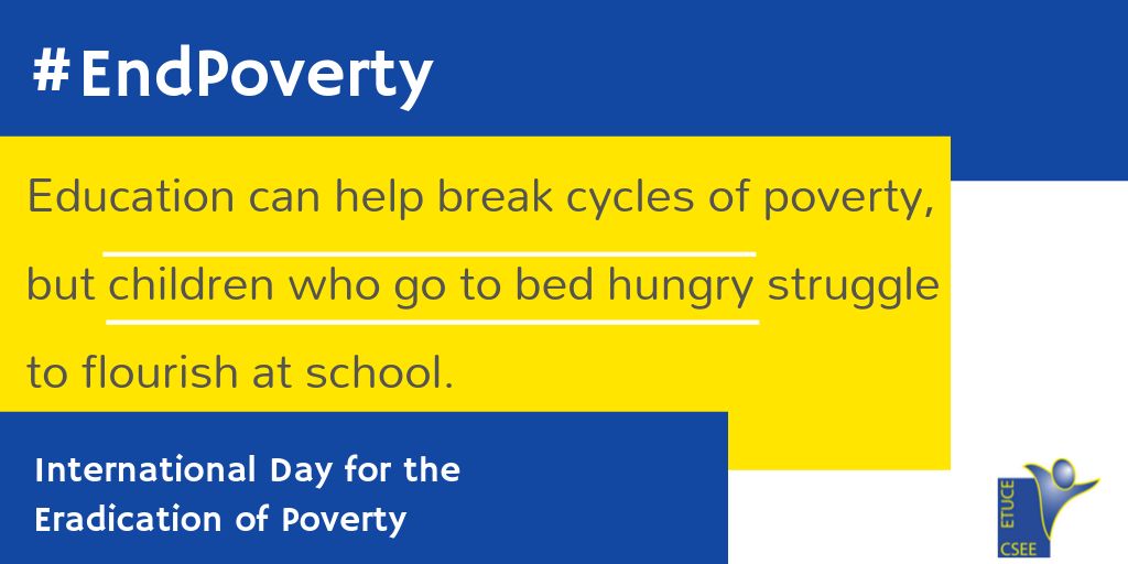 Education can help break cycles of poverty, but children who go to bed hungry struggle to flourish at school. 2019 marks the 30th anniversary of the United Nations Convention of the Rights of the Child (UNCRC), but too many children are still in poverty and excluded from the full benefits of education. This year’s International Day for the Eradication of Poverty focuses on children, so ETUCE calls for schools and teachers to get the funding and support they need to lift children out of poverty.