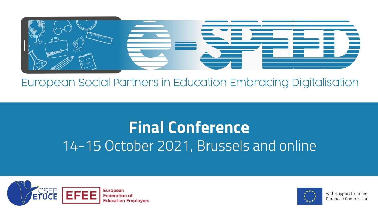 In the last decades, digital technologies, ICTs, and artificial intelligence tools have rapidly assumed a central role in all fields of our daily life, with the education sector making no exception. Through the ETUCE social dialogue project “e-Speed”, the European Social Partners in Education have joined to dig into the challenges and opportunities of digital education.