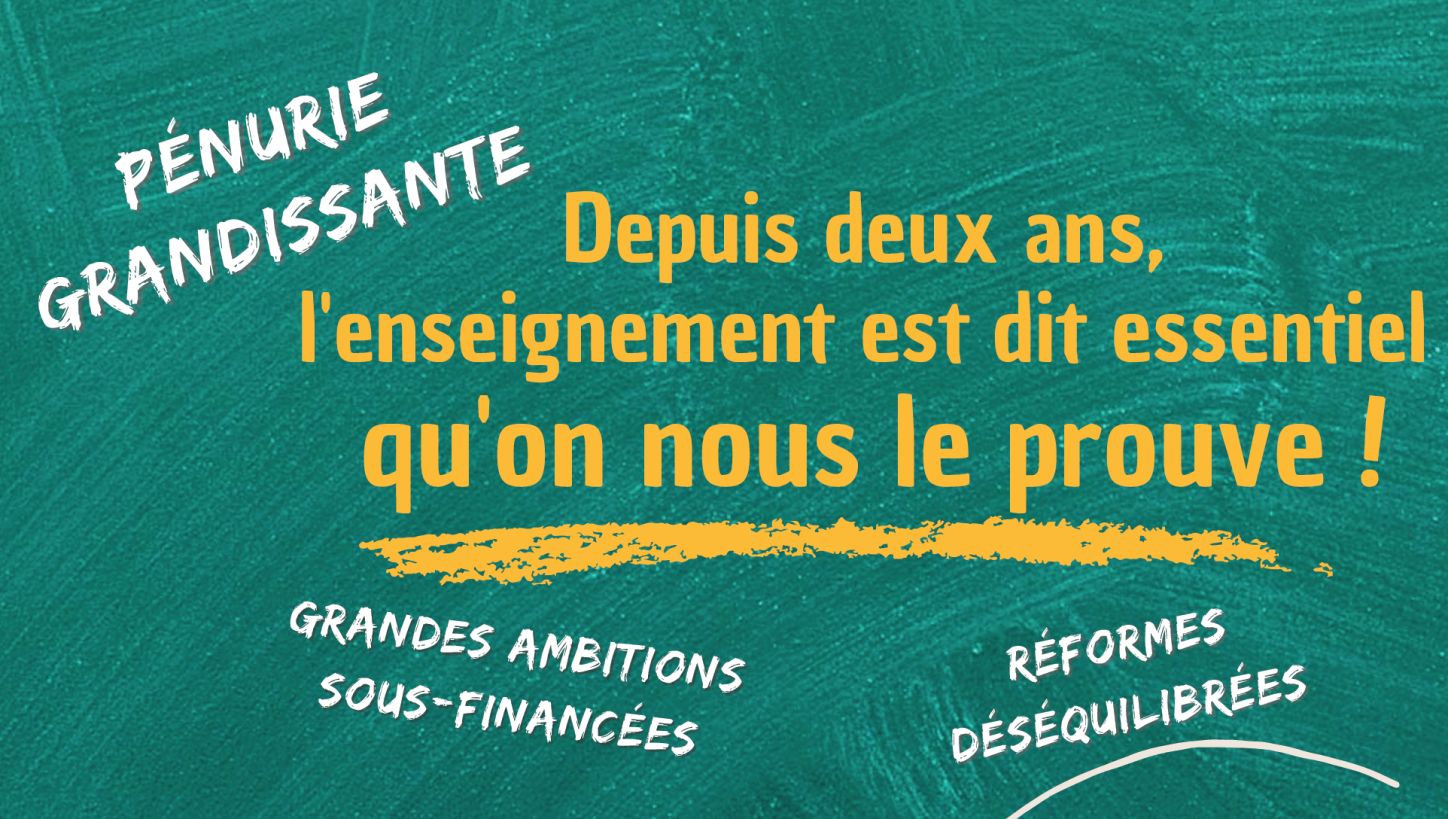 Teaching staff, who are constantly under pressure, are confronted with working conditions that are increasingly deteriorating with the health crisis, as well as with contemptuous remarks, from certain politicians with regard to education personnel. In addition, the shortage of teachers is no longer to be demonstrated, but political considerations do not push young people to turn to this profession or to stay in it.