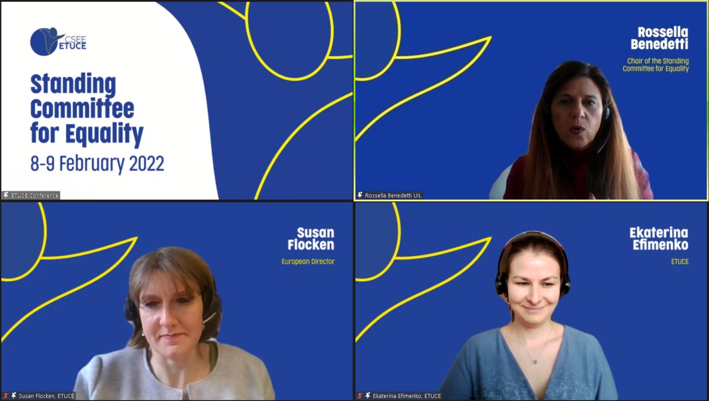 On 8-9 February 2022, more than 50 trade union equality experts across Europe gathered online for the annual meeting of the ETUCE Standing Committee for Equality, the consultative body to the ETUCE Committee that seeks to move forward the priorities and recommendations on equal opportunities set out in the ETUCE Work Programme and ETUCE Action Plan on Equality, Diversity and Inclusion. During the meeting, participants exchanged ideas and experiences on how to promote equal opportunities for quality education and attractiveness of the teaching profession.
