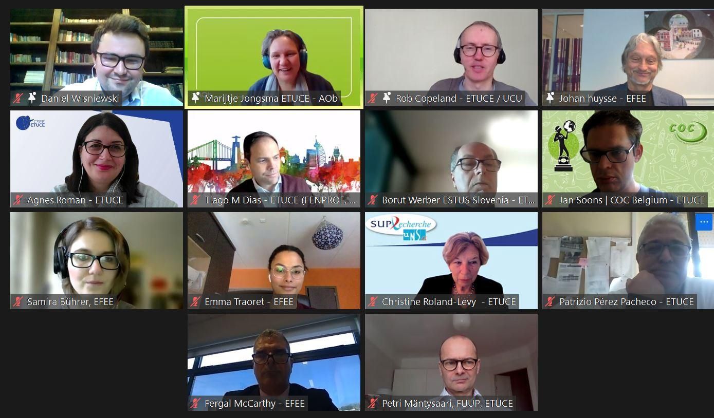 40 representatives of higher education trade unions and employers of ETUCE and EFEE member organisations met online on 9-10 February 2022 for the second Peer Learning Activity of the social partner project “Promoting Quality of Academic Teaching and Management”. The event hosted by the higher education social partners of the Netherlands linked to the work laid out by the European Sectoral Social Dialogue for Education Work Programme 2020-2021. The participants discussed some of the important issues relating to social dialogue in higher education as well as examples of good practice.