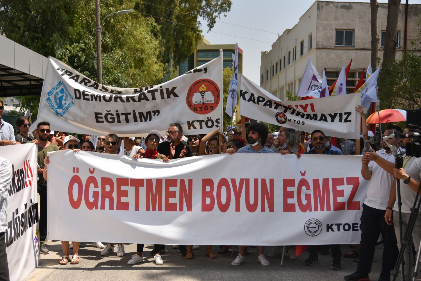 On 2 August 2022, KTÖS and KTOEÖS, together with their affiliates, gathered in front of the Ministry of Education in Nicosia in the joint protest action " we will not give back our rights".