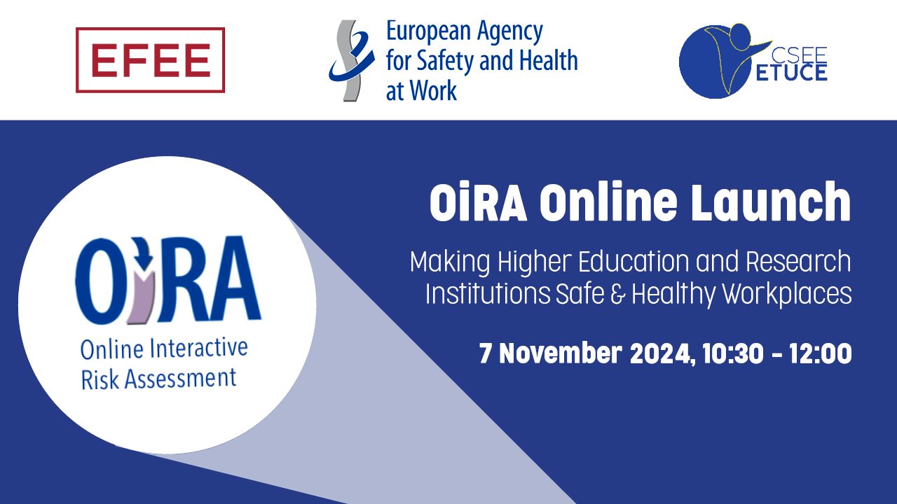 This event will introduce the new Online Interactive Risk Assessment (OiRA) tool for Higher Education and Research (HER), developed by ETUCE and EFEE, the European social partners in Education, in collaboration with the EU Agency for Safety and Health at Work (EU-OSHA).
