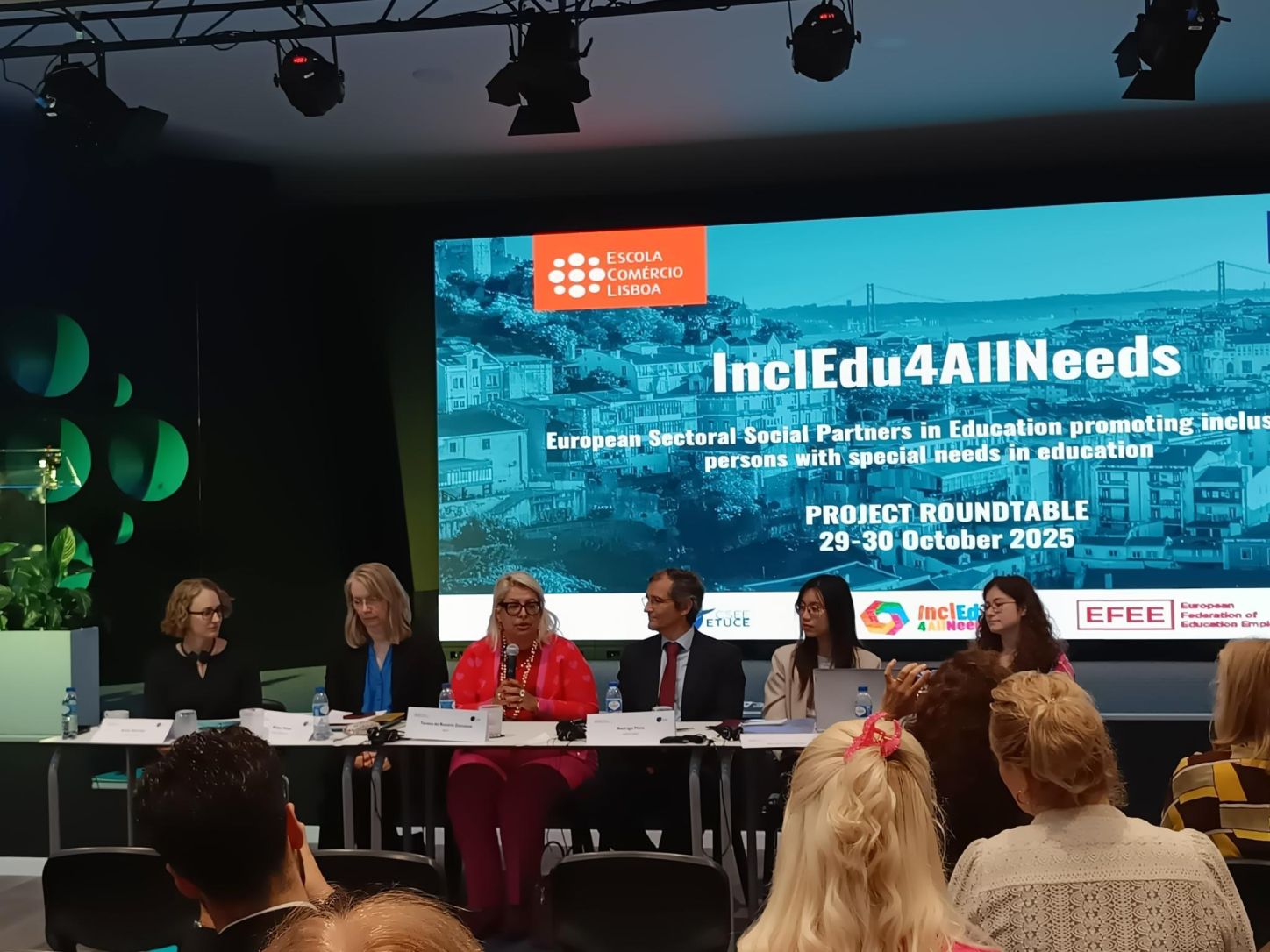 The roundtable also served as an opportunity to enable social dialogue in the Portuguese context on the inclusion of persons with special needs. A panel discussion featuring representatives from education unions, employer organisations, and public authorities focused on the implementation of the Portuguese legislation on inclusion (DL 54) where education called for increased resources, more educational support staff, and assistant teachers to make real inclusion possible. The roundtable also served as a platform for mutual learning, with participants exchanging experiences and good practices.