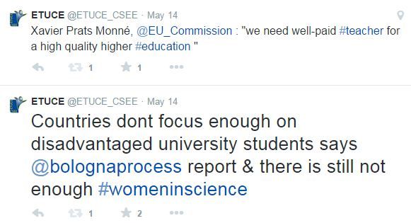 Комментируя результаты работы Ереванской конференции, Европейский директор Martin Rømer сказал: "участие социальных партнеров в процессе реформирования в сфере высшего образования необходимо для достижения целей Болонского процесса - высококачественного Европейского пространства высшего образования. Недопустим тот факт, что мнения социальных партнеров в сфере высшего образования не в полной мере интегрированы в реформы и цели Болонского процесса. Надлежащий социальный диалог, хорошо оплачиваемые учителя и благоприятные условия труда и среда являются важнейшими факторами для достижения успеха Болонского процесса". Это мнение поддержал Xavier Prats-Monné, Генеральный директор директората Европейской Комиссии по культуре и образованию, который подчеркнул, что "Мы нуждаемся в хорошо оплачиваемом учителе для высококачественного высшего образования".