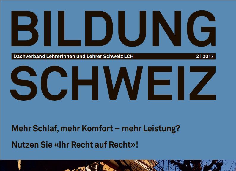 Entre avril 2016 et février 2017, le Swiss Dachverband Lehrer und Lehrerinnen Schweiz (LCH) a publié dans son magazine mensuel une série sur la santé des enseignant(e)s. Le LCH a mené un projet étendu sur la santé des enseignant(e)s en Suisse, dans le but de renforcer la promotion et la protection de la santé dans les écoles suisses pour parvenir à mettre en place une gestion de la santé professionnelle dans toutes les écoles du pays.