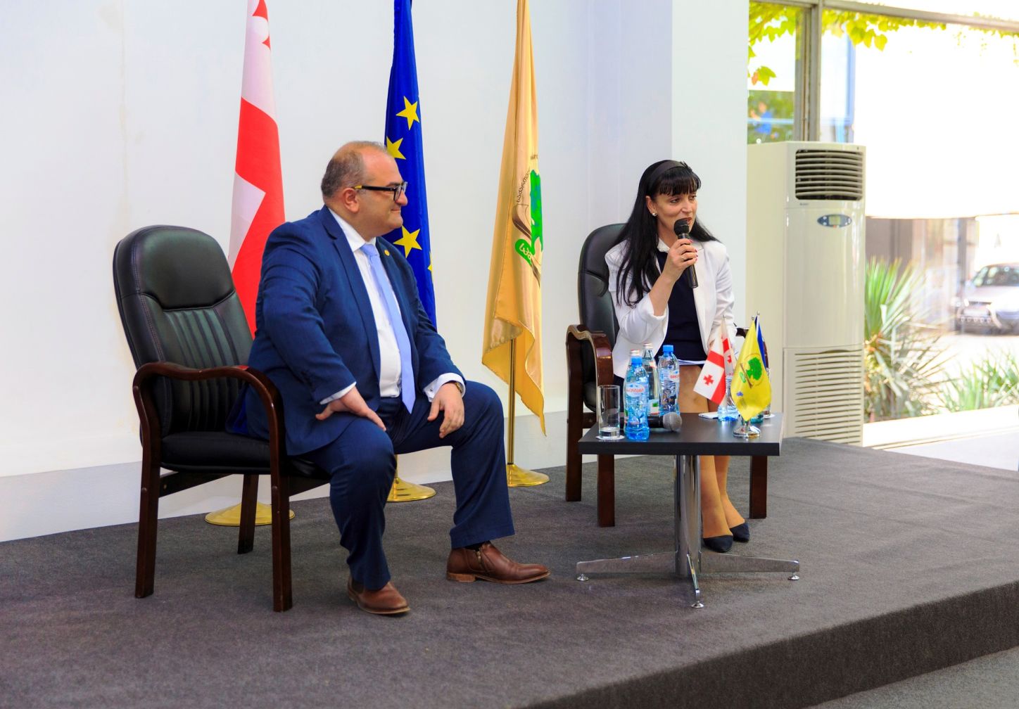 Le Vice-premier ministre et Ministre de l'éducation et des sciences a félicité et remercié les enseignant(e)s pour leur travail acharné. Il a mentionné des activités planifiées en vue d’améliorer la condition de la profession enseignante et l'implication des enseignant(e)s dans le processus de réforme en cours. Alexandre Jejelava a par ailleurs informé les participant(e)s de la stratégie axée notamment sur l'alignement des salaires des enseignant(e)s par rapport au salaire moyen des travailleurs/euses des services publics et l'introduction du système de remboursement dans le cadre du congé de maternité des enseignantes.