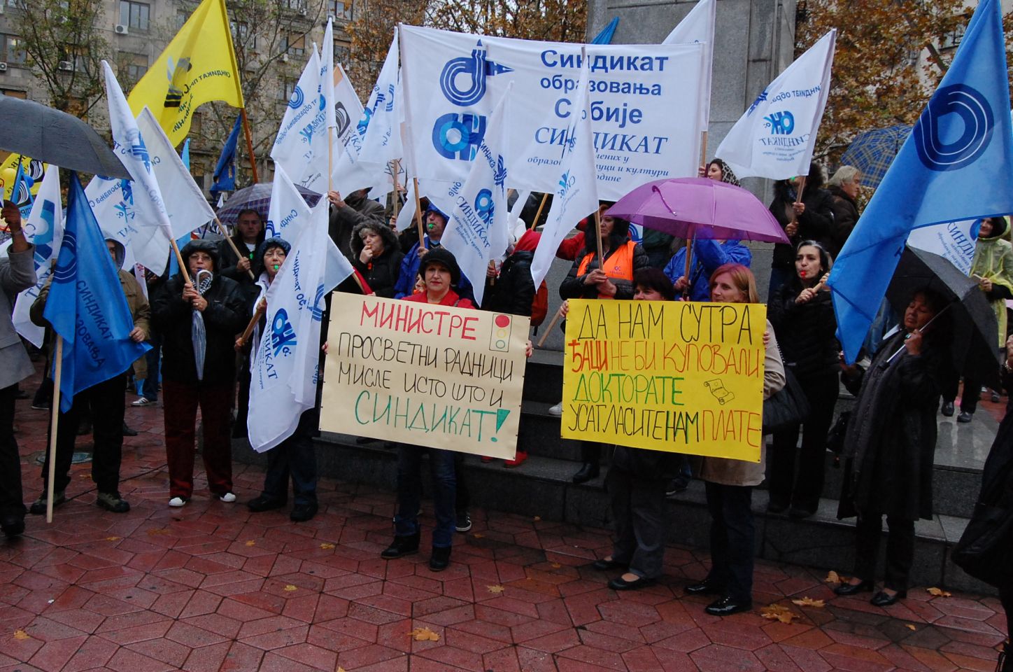 Aujourd’hui, des enseignant·e·s et les syndicats de l’enseignement serbes descendent dans les rues de Belgrade pour manifester devant le Ministère de l’éducation, le gouvernement serbe et l’administration locale afin de revendiquer des salaires décents et un dialogue social effectif pour l’éducation. En effet, les syndicats indiquent que les dispositions de la loi serbe sur les salaires dans le secteur public, qui entreront en vigueur début 2019, positionnent la rémunération du personnel éducatif au 8e groupe salarial, tandis que les salaires des autres postes du secteur public requérant un niveau équivalent de qualifications se positionnent au 9e groupe salarial.