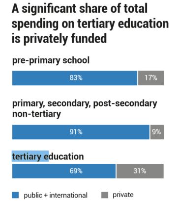 Отчет показывает, что такой разрыв в образовании и на рынке труда существенно усугубляется вследствие приватизации и отсутствия государственного финансирования системы образования. Из доклада следует, что особенно уязвимым в этом смысле является дошкольное и высшее образование: в то время как 91% начальных и средних школ в ОЭСР и странах-партнерах финансируются государством, доля частных инвестиций в дошкольное и высшее образование составляет 17% и 31% соответственно. В таких странах как Чешская республика, Греция, Венгрия, Ирландия, Италия, Литва, Люксембург и Российская федерация государственные вложения в образовательный сектор составляют в среднем лишь 3-4% от ВВП. Комитет ETUCE предупреждает, что наблюдается ползучая “внутренняя приватизация”, все более проникающая в европейские школы в форме оплаты, основанной на показателях и на накоплении тестовых баллов, а также на результатах ежегодных проверок производительности.