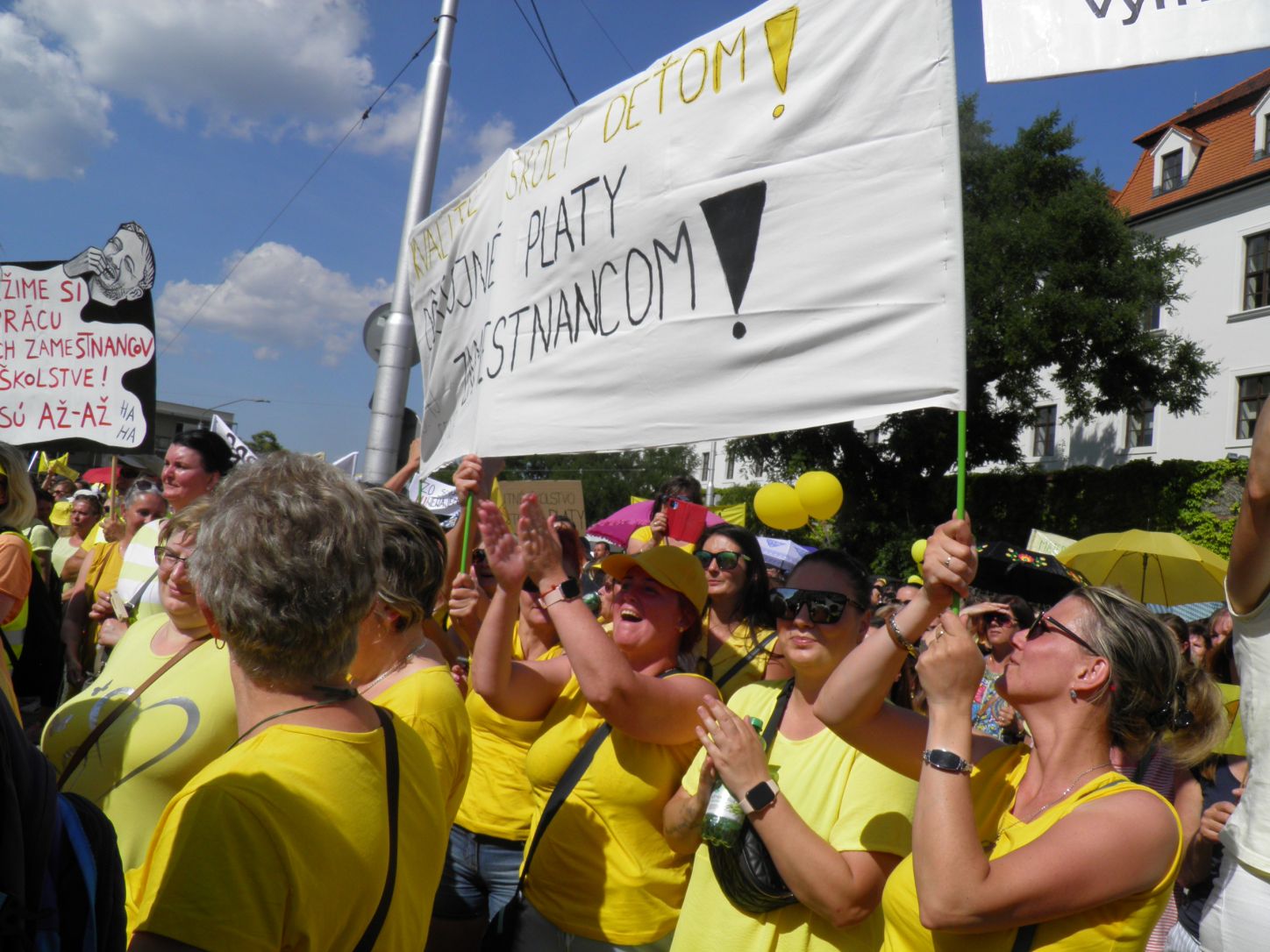 В своем заявлении представители работников подвергли критике полное отсутствие повышения окладов в 2021 году и повышение зарплат на 3% с 1 июля 2022 года как недостаточные. «Ожидается, что огромный рост цен на электроэнергию и продукты питания, вызванный инфляцией, достигнет двузначных значений, что приведет к обвальному снижению реальной заработной платы. OZPŠaV сообщает, что качество жизни работников образования снижается, и все школы и образовательные учреждения Словакии стоят на пороге финансового краха. Уровень финансирования образования и науки в Словакии намного ниже, чем в странах с развитой экономикой. Работники общего образования и учреждений ПТО вместе с работниками непедагогических профессий уже давно находятся на дальнем крае поля зрения словацких политиков. В финансировании образования отсутствует последовательность. Выпускники средней школы уезжают из страны, чтобы учиться за рубежом, где они находят более совершенную инфраструктуру и более высоко ценимое применение приобретенных знаний и навыков. Мотивация к выбору педагогической профессии снижается, и в некоторых регионах страны скоро не будет никого, кто мог бы предоставлять учащимся качественное общее образование и профессионально-техническое обучение.